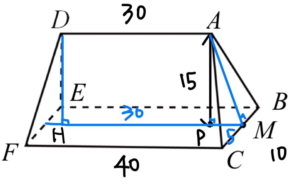 由對稱性可知$$\overline{PM}=\frac{40-30}{2}=5$$
